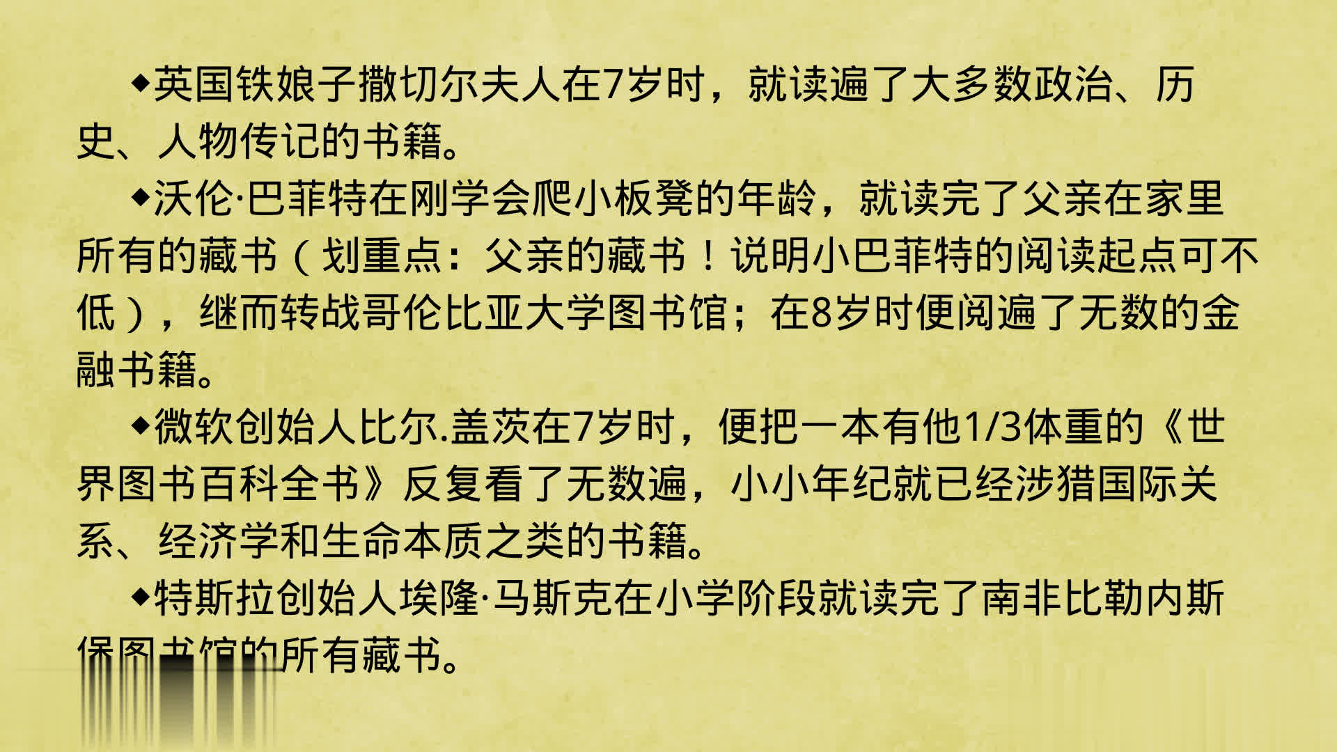 实际上,很多世界名人在小时候就阅读了同龄人都不曾阅读过的书,比如: